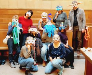 The Council of All Beings workshop was led by Anna McIvor, Chair of Transition Cambridge and a director of The Resilience Web, which invited participants to make and wear the mask of a non-human being: a tree, a field, a flower, a river, a worm, a bird etc. Each being addressed the assembly wearing their mask, detailing the effect of human activity on their life and existence. They then offered humans their strengths and qualities (e.g. the wisdom of a longer perspective, the capacity to flow), to support us in our efforts to restore the planet.