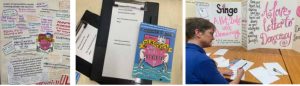 We presented our ideas- in-progress for the final weekend. This included participatory activities in the Exhibition Room where people were invited to write up their profiles for a ‘Date with Democracy’ for the fictional ‘Singe’ Dating App. They were asked to describe themselves and what they wanted from Democracy as we explored different ways of drawing out people’s hopes, dreams and fears for Democracy. We also had a reading of the first draft of ‘The Dazzle’ in the Courtroom.