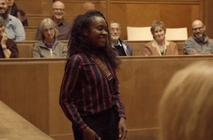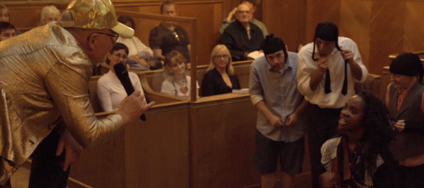 Patrick wrote the play with the venue very much in mind – we wanted to focus on our relationship with Democracy, what it meant to us all today.  Therefore, the play became more of an inquiry, with the courtroom venue requiring us to imagine the audience’s relationship to the action.  We rehearsed as if the play itself was evidence in an ongoing debate about the ideals, challenges and complications of Democracy.