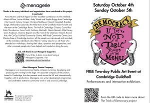 Thank you to Menagerie for a great play! It really spoke to amazing local Cambridge issues (raw and democratic)…National issues too.