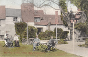 I really like this old postcard, especially the two ladies who are sitting up in the tree on some sort of platform. The first picture is a postcard which although posted, has had the stamp removed so the postmark is not visible. The detail written on the back is great too. I quote, “The lady in the pink, sitting in the tree, is the one from whom I bought the card. She has kept a little general shop up the road for over 60 years. She and the lady on the left (the proprietors wife) are the only two on the picture still living. Jim and Iris have had it all modernised, hot and cold water, gas fires etc in bedrooms & it is all very nice and comfy. X is our bedroom.”